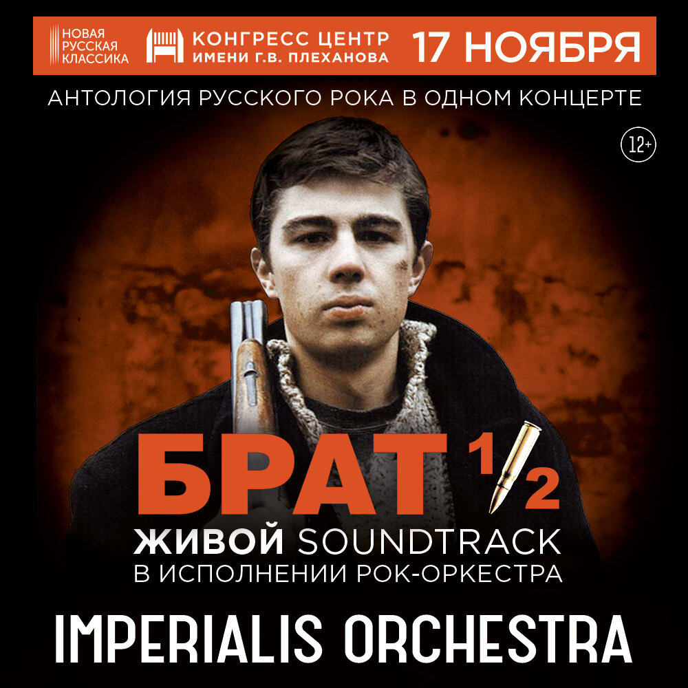 Гости Конгресс-центра им. Плеханова станут свидетелями уникального музыкального эксперимента: впервые в истории российской музыки саундтрек из культовых фильмов «Брат» и «Брат-2» прозвучат в живом исполнении рок-оркестра! Шоу будет сопровождаться видеофрагментами из любимых кинокартин. Би-2, Земфира, «Наутилус Помпилиус», «Аквариум», «Океан Эльзи», «Сплин», «Танцы минус», «Крематорий» «Агата Кристи», «Смысловые галлюцинации», «Ногу свело» – компания «Новая Русская Классика» представляет антологию русского рока в одном концерте. Такого ещё не видел и не слышал никто! Остаётся добавить едва ли не главное: лучшие композиции легендарных рок-коллективов из фильмов, ставших библией для нескольких поколений зрителей, исполнит один из самых узнаваемых и необычных коллективов России – Imperialis Orchestra. Этот молодой оркестр уже успел завоевать огромную популярность у слушателей. Бешеная энергетика, сумасшедший драйв плюс яркая индивидуальность, помноженные на безусловный профессионализм, –