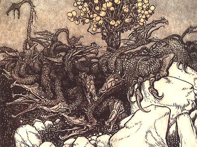 Принести яблоки из сада Гесперид было одиннадцатым заданием Геракла. Герой действовал по советам и при помощи Персея, а потом обвел вокруг пальца Атласа, держателя небесного свода. Все это Геракл провернул потому, что прекрасно знал, что ни одно человеческое создание не могло обмануть этого великого дракона Ладона.