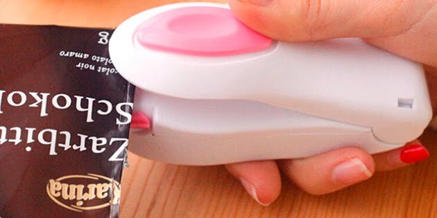 1. Машинка для запайки пакетов Позволяет герметично упаковать что-либо в полиэтиленовый пакет, а также починить прохудившийся. Прибор работает от двух пальчиковых батареек. Цена: 79 рублей. 2.Грифельные наклейки для банок Чтобы не забыть, что и где лежит, непрозрачные ёмкости для хранения лучше подписывать. Именно для этого предназначены данные наклейки. Писать на них лучше белым маркером: мел стирается. Цена: 97 рублей. 3.Умная лампа Простая с виду лампа оснащена датчиком автоматического включения, который реагирует на звук. Микрофон фиксирует малейших шорох, но срабатывает только в полной темноте. Цена: от 99 рублей. 4.Универсальный пульт Пульты от домашней техники любят пропадать в самый неподходящий момент. В качестве запасного варианта удобно держать под рукой такой вот универсальный гаджет. Цена: 73 рубля. 5.Ключ-нож Несмотря на несерьёзный размер, этот ключ-нож очень хорошо справляется со своими функциями. Разделать мясо с его помощью, конечно, не выйдет, а вот открывать посылки