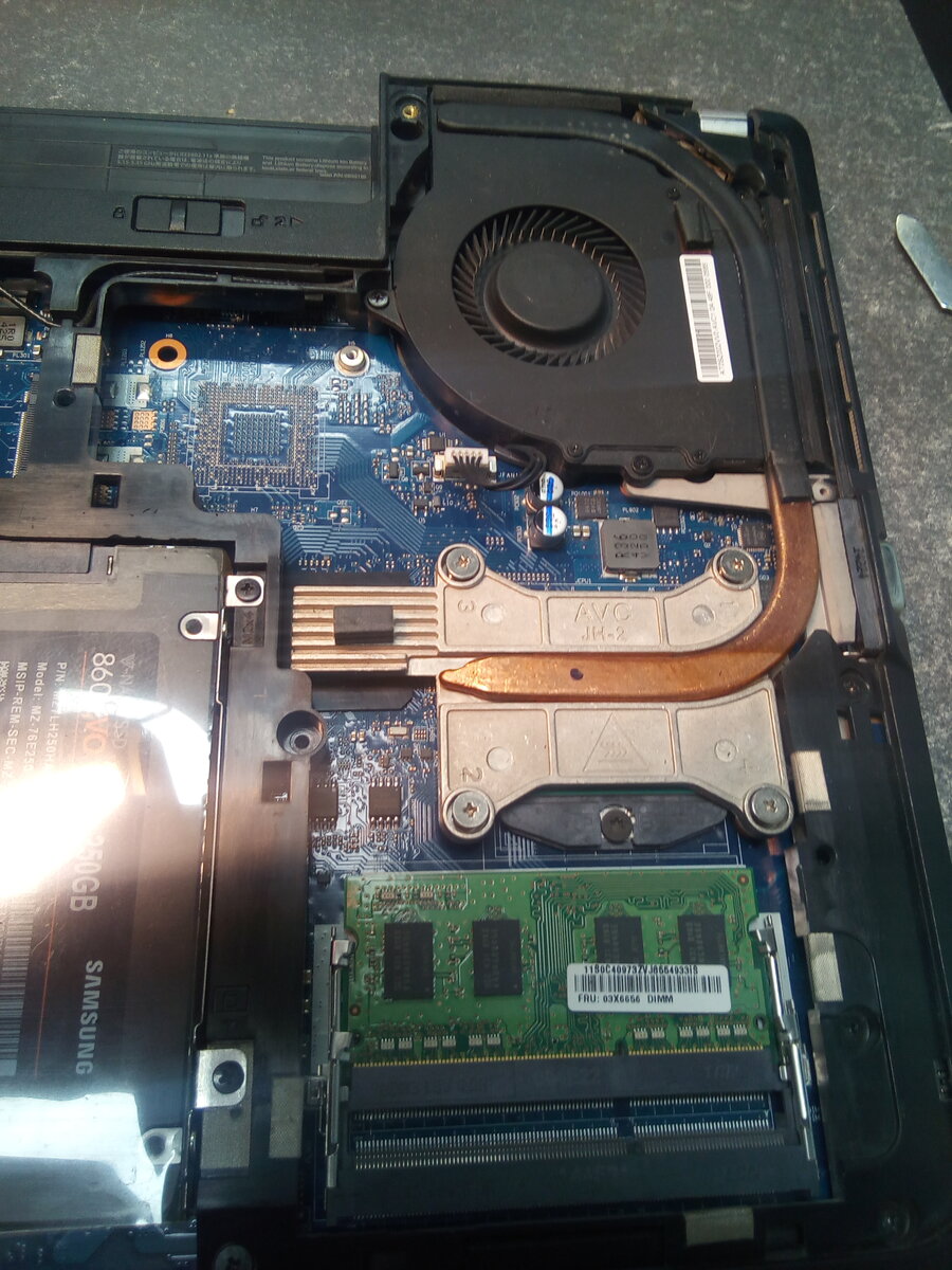 Принесли Lenovo ThinkPad E540. Ноут в случайное время помигав диодами выключается. Перегрев в данном случае исключен: вентилятор работает, решетка чистая, термопаста свежая, бук на тестах температуру держит хорошо. Опыт подсказывает, независимо от производителя и модели ноутбука виновником в таких ситуациях оказывается компаратор напряжений LM393. Это, так сказать, его фирменный почерк. С целью замены выколупываем из ноутбука материнку. Небольшое отступление: У данной модели несколько необычно снимается клавиатура. Надо сдвинуть вверх рамку клавиатуры и над рядом клавиш CapsLock - Enter будут болтики, которые держат клавиатуру. Ноутбук разобран, материка снята. Долго и упорно ищем на ней LM393. Не находим, материмся, открываем схему ищем там. И находим аж три штуки. Вооружившись этой информацией еще раз пыримся на плату. И находим. На этот раз инженеры Lenovo решили не использовать широко распространенные LM393 в корпусе SO8, а установили микросхемы в корпусе TSSOP. Вещь редкая цены н