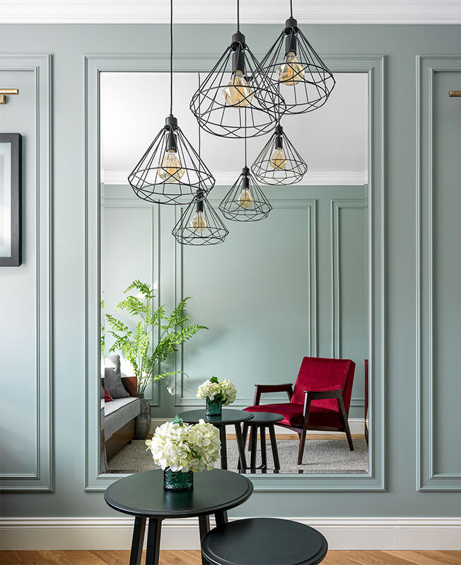 Дизайнер Виктория Власова оформила квартиру 80 кв. метров. Интерьер создавался для сдачи в аренду в ближайшие годы, но в перспективе заказчики планировали и сами пользоваться жильем. Автор проекта сосредоточилась на создании хорошей качественной основы интерьера, но при этом владельцы хотели, чтобы мобильные предметы мебели были бюджетными. На пол положили массив дуба, стены оформили гипсовой лепниной и выкрасили нейтральной краской Little Greene. Межкомнатные двери (в основном сдвижные) изготовили на заказ в столярной мастерской по эскизам автора проекта. В квартире сформировали объединенную кухню-гостиную с просторной столовой зоной, а также приватный блок — спальню с гардеробной и ванной комнатой. Также в интерьере нашлось место компактной гостевой, которая впоследствии может превратиться в детскую или кабинет. В прихожей оборудовали вместительные системы хранения. Холл от входной зоны отделен объемными портьерами, которые как и весь текстиль отшит в мастерской Victoria Vlasova In