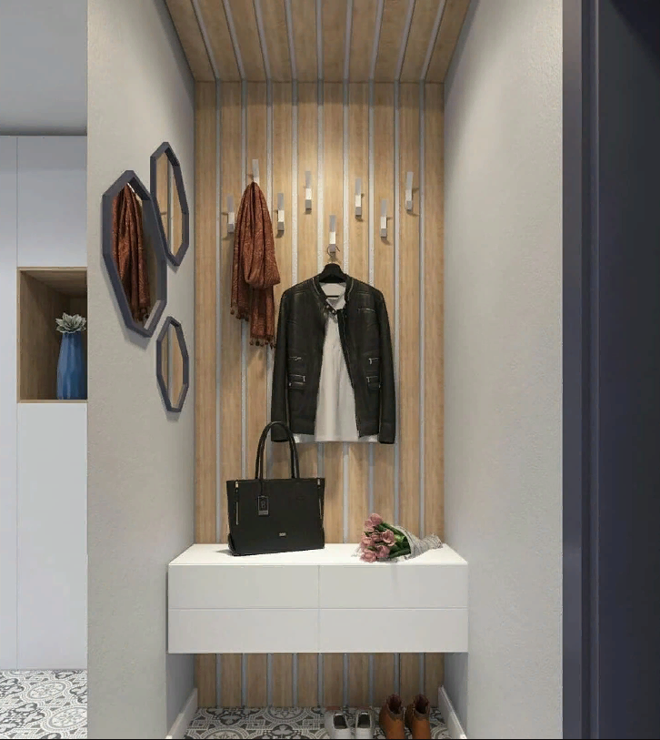 Как часто мы сталкиваемся с тем что, к нам пришли гости, семья из 4 человек, они зашли в прихожую... И места не осталось. Такие уж у нас в квартирах прихожие. Конечно есть и квартиры с большим коридором, но это скорее исключение. Чаще наш коридор это 3-4 квадратных метра, или того меньше! И как в нём разместить всё самое необходимое? Ещё и сделать чтобы было красиво! Давайте рассмотрим несколько вариантов Маленький коридор, но разместили самое необходимое. Есть где оставить обувь, повесить одежду и поставить сумки, в ящиках спрятать перчатки, чистящие для обуви. Конечно здесь нет места для хранения сезонной одежды, то что не по сезону остаётся уносить в основной шкаф. Вместо маленьких зеркал, можно было повесить одно большое до пола, чтобы видеть себя полностью одевшись. Такой вариант можно сделать уложившись в небольшой бюджет. Длинный коридор. Многим из нас это не нравится. Но посмотрите, сделав на одной стене шкаф полностью зеркальный, расширили пространство. Не обязате