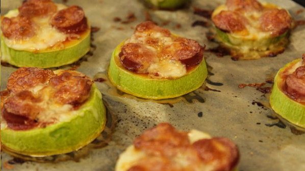 1. Кабачки с охотничьими колбасками - "мини-пиццы"