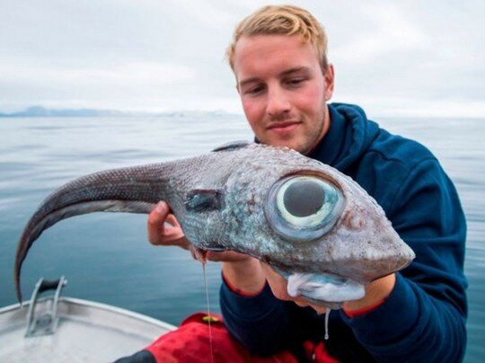 Анна ДЖЕДЖУЛА, «ФАКТЫ» Норвежский тинэйджер Оскар Лундал поймал на удочку у берегов острова Аннейа удивительную рыбу с огромными глазами, которая поставила его самого и его друзей в соцсетях в тупик. Одним она напоминало динозавра, другим — инопланетянина, третьим — дракона. На самом деле это крайне редко встречающаяся рыба, латинское название которой Chimaeras Monstrosa Linnaeus, в честь химеры — чудовища с головой льва и хвостом змеи из древнегреческих мифов). Известна она также, как американский гидролаг — хрящевая рыба отряда химерообразных. Она состоит в родстве с акулами и жила в океане еще 400 миллионов лет назад. Гидролага очень редко можно выловить, так как он обитает на большой глубине. Лундал говорит, что поймал свою добычу на глубине около 800 метров и сматывал леску около получаса. 19-летний Оскар признается, что чуть не выпал за борт от удивления, когда увидел свой улов. Как пишет газета The Sun, норвежец зажарил рыбу дома и говорит, что она была довольно вкусной, несмотр
