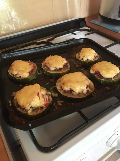 Как правило летом очень много на даче кабачков и что с ними делать постоянно ломаю голову, тем более что муж не очень то их любит, но тут пришёл в голову простой и не хитрый рецепт который понравился даже мужу. Ингредиенты Шаги Режим кабачок кольцами, выкладываем на смазанный маслом противень, солим кольца кабачков Фарш смешивает с мелко нарезанным луком и солим по вкусу (можно добавить специи какие больше предпочитаете к мясу) Выкладываем фарш на кольца кабачка Режим кольцами помидор, кладём его поверх фарша Смазываем помидор майонезом и отправляемую в духовку (180 градусов) на 25 минут достаём и посыпаем тертым сыром и ещё на 10 минут. Кабачки с фаршем готовы. источник Кулинарный Оскар - Премия Cookpad 2019. Выиграй 7000 рублей. Подробности по ссылке https://cookpad-konkurs.ru/2019