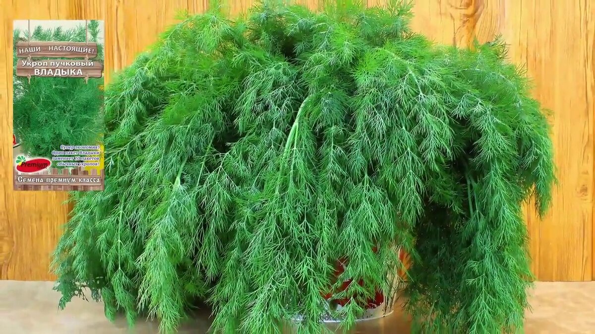 Пучковой укроп Владыка. Это самый урожайный укроп среди известных сортов и он существенно превосходит всех своих конкурентов. На одну семью достаточно посеять всего один пакет и этого хватит чтобы обеспечивать вас ароматным урожаем весь сезон, еще и на заморозку и сушку хватит. Высокий урожай получаем в результате многоразовой срезки, а за сезон это не менее 4-5 раз. Один пакет семян Владыки заменяет 10 пакетов обычного укропа. Этот сорт относится к среднеспелым, поэтому период от всходов до начала появления зонтиков у него очень длительный, 65-70 дней. В результате этой особенности, растения долго не имеет стебля и приобретают форму плотного компактного невысокого куста. У Владыки 4-6 нижних междоузлий сближены. В пазухах листьев весь сезон отрастают боковые побеги, чего не бывает у обычных сортов. Укроп Владыка настоящий владыка над всеми укропами. Густолиственный, ароматный, жирный укроп!