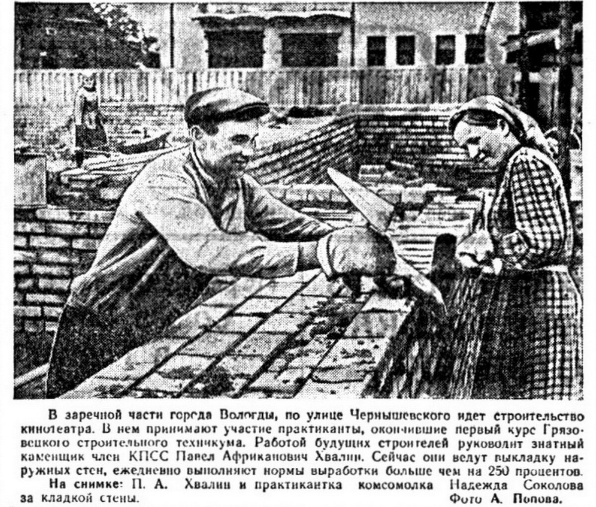 По правде говоря, информации очень мало — на сайтах пишут одно и то же, а каких-то поистине интересных сведений попросту нет. Постараюсь восстановить хронологию событий. «В послевоенные годы в Вологде было построено пять кинотеатров: в 1957 году - «Родина» на улице Чернышевского, в 1960 году - «Мир» в поселке Молочное, в 1961 году - «Октябрь» на улице Лечебной в Октябрьском поселке, в 1963 году - «Спутник» в Завокзальном микрорайоне. В 1971 году на улице Пушкинской открыл свои двери для зрителей кинотеатр имени Ленинского комсомола» — вот и всё, что выдаёт лучший друг Интернет-пользователя — Гугл. Однако если поискать получше(что я и сделала), то можно найти несколько интересных фактов. Например, автором типового проекта, по которому было построено здание, является Зоя Брод. Проект был разработан в начале пятидесятых и до конца десятилетия на бескрайних просторах СССР по нему было построено более ста кинотеатров. Большинство получили название «Родина», но были и «Спутник», «Октябрь