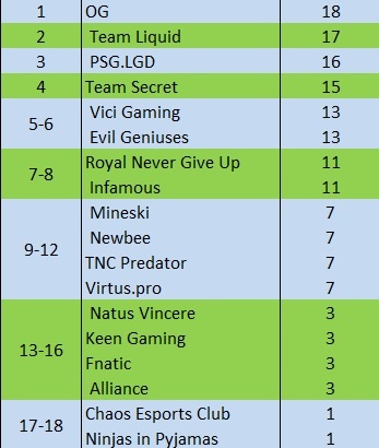 Для анализа результатов выступлений я введу систему начисления очков обратную занятым местам за 1 место 18 очков, за последнее - 1 очко Данная система будет применена для оценки регионов и стран. Если посмотреть сколько очков по данной системе набрали регионы то отрыв Европейской сцены и правда внушителен. На The Internetional 2019 приняло участие 90 игроков из 30 стран Если представить, что очки набирали не только команды, но и игроки в отдельности, то суммируя очки полученные представителями каждой страны увидим следующий расклад: И вот тут, результаты европейцев уже сравнимы с китайцами, и это при том, что европейцев на 7 человек больше. Поделив количество заработанных очков каждого региона, на количество участников, получаем так называемое - качество выступления И