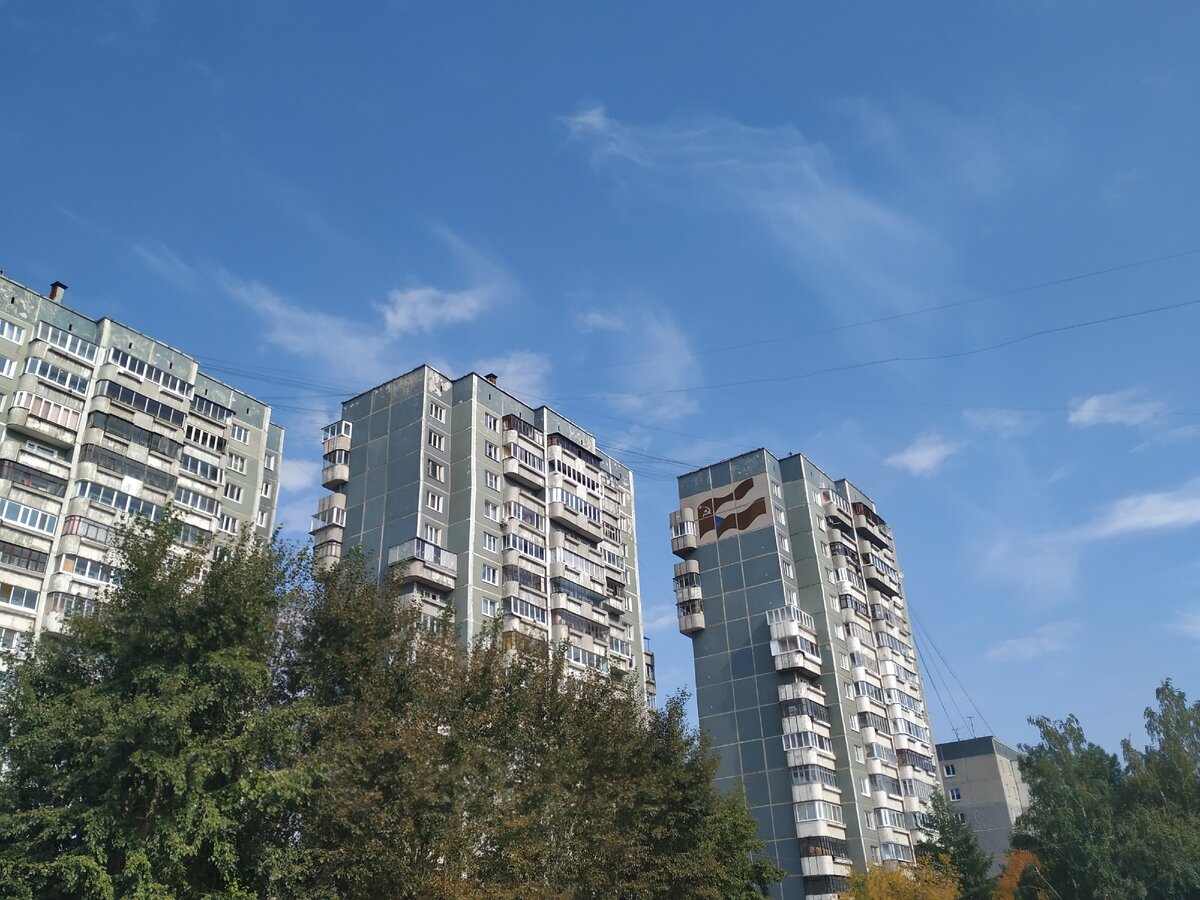 Но это недалече Верх-Исетского пруда, а вот одну из многоэтажечек украшают флаги СССР и Кубы вовсе не там...