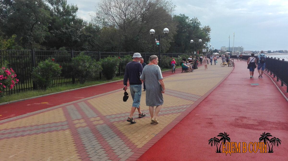 На прошлых выходных мы посетили Имеретинскую низменность и сделали для Вас несколько фото, примерно 60 штук. С утра было дождливо, по этому людей особо не было. Набережная оборудована велодорожкой, по которой все с удовольствием катаются. Если у Вас нет своего велосипеда или самоката, не переживайте, огромное количество пунктов проката Вам поможет. Много различных кафе и ресторанов. А рядом пляж и море, шепот прибоя, хорошо в сентябре в Сочи. На улице уже не так жарко, а водичка такая теплая... Покупались, позагорали, отдохнули и отправились гулять дальше. Красота, кругом растут пальмы, цветы, виноград, гранат и различные фрукты. Не по теме: Если Вас интересует Сочи, Вы планируете переехать, хотите что-то узнать, что-то спросить. И у нас нет на эту тему статьи. Пожалуйста, предлагайте темы, мы с радостью их напишем. Почта для связи xoxakas@mail.ru Очень много пальм, на которых растут не понятные (не известные нам) плоды. Как Вы думаете, что это и можно ли это есть? А потом мы добрал