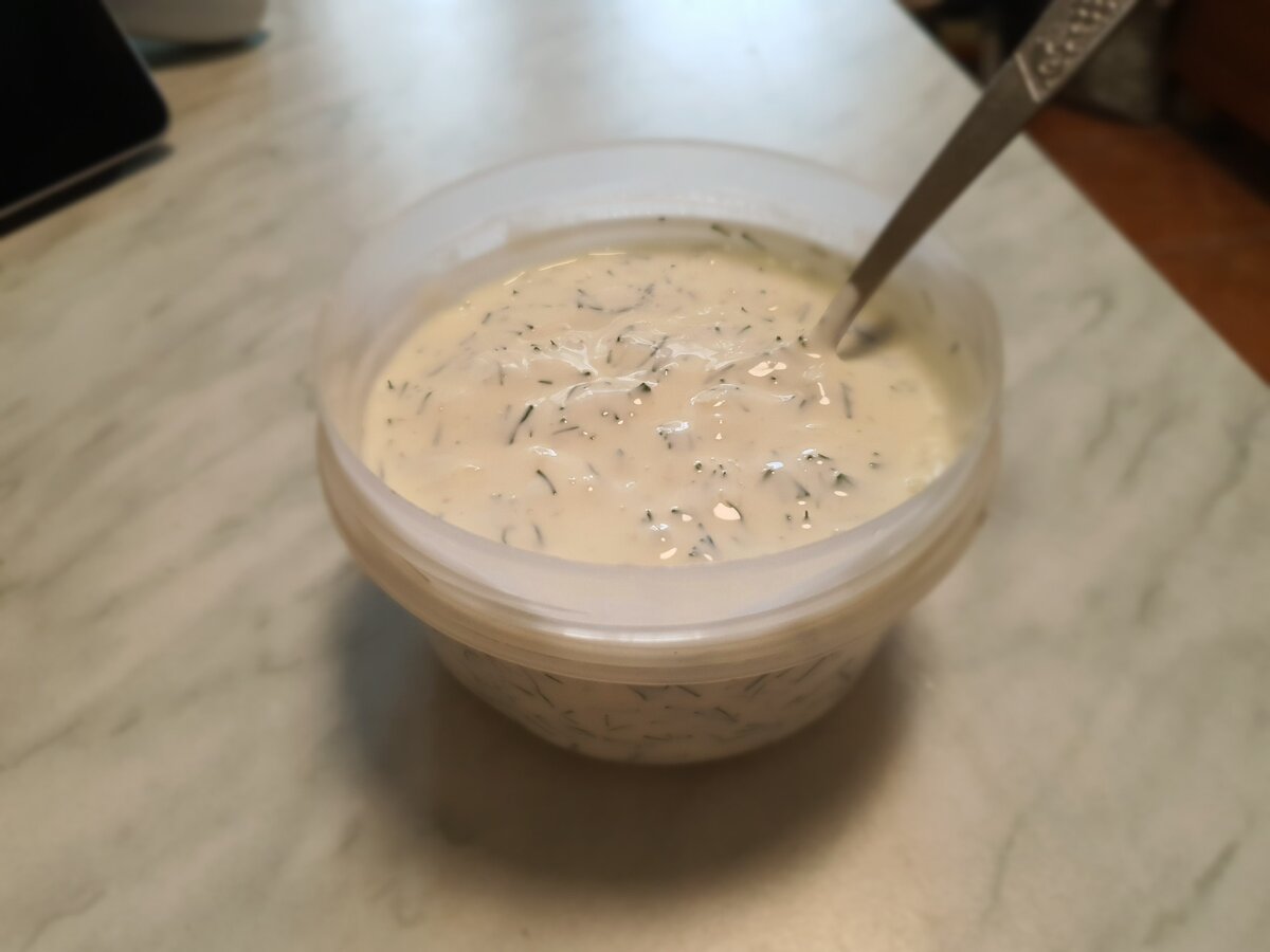 Ещё один лёгкий соус на основе греческого йогурта или 10% сметаны. Подходит для салотов, мяса, гренок или сухариеов. В приготовлении прост, как пареная репа.🙂 Что понадобится: Также нам потребуется ёмкость для смешивания и хранения - можно использовать маленький контейнер для микроволновки или банку с крышкой. Приготовление: Приятного аппетита! P.S. Хранится соус 2-3 дня, так что не стоит делать сразу много, если не уверенны, что получится быстро всё использовать.