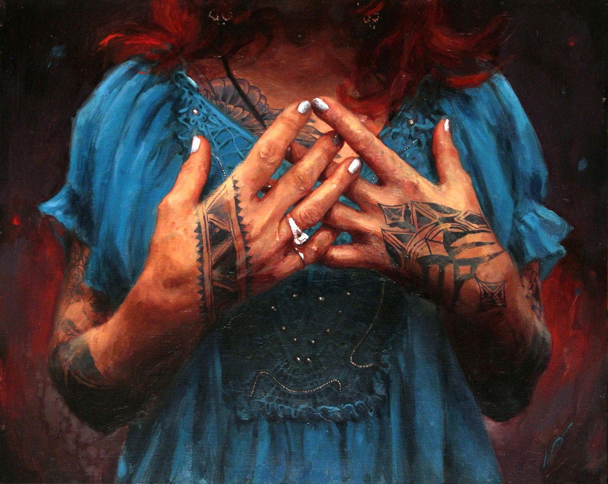 Этот художник доказал, что татуировки могут существовать не только на человеческом теле. Оказывается, они очень гармонично смотрятся на картинах, написанных маслом! Красочные брутальные «рукава» или изящные узоры на женской коже − его работы варьируются от просто красивых до вызывающе-шокирующих. А главное, произведения Шона Барбера (Shawn Barber) знакомят нас с «закулисьем» мира тату! Ранее мы писали о разных видах татуировок: треш польке, дотворк и та-моко. Теперь, с помощью картин Шона Барбера, вы сможете увидеть не только конечный результат, но и весь процесс создания подкожных рисунков! Этот художник изображает мировых звёзд тату-искусства за работой. На его картинах чаще всего нарисованы одни только руки с тату-машинкой, наносящие изображение на тело. Что интересно, здесь можно увидеть несколько пар рук, причем одна пара четкая, а другие – словно бы размытые. Это позволяет зрителю как бы отправиться в путешествие во времени и увидеть мастера за разными стадиями его работы. Плю