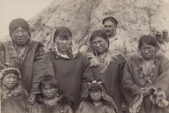 Разместили гостей в чуме, где кроме них было еще человек 10 – все непрерывно курили и кашляли, угощение состояло из тухлого моржового мяса (очевидно, капальхена), пеммикана и оленины, капитана угостили крепким русским чаем.