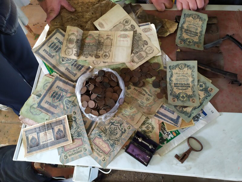 В ста километрах от Челябинска на юг расположен старинный город Троицк, основанный в 1743 году. В нем тоже находят клады. Вот и в сентябре 2019 троичанину Дамиру Илялову повезло. Он делал ремонт в своем доме на улице Летягина, и обнаружил мешочек с монетами, кожаный портмоне с дореволюционными банкнотами разного номинала и краткосрочными облигациями, опасную бритву, нож и миниатюрный медицинский шприц в оригинальной упаковке. "Дом этот старинный, построенный еще прадедом, — рассказал Дамир изданию "Регион-Южный Урал". — Семья его жила довольно крепко: прадед шил шапки. В тайнике вместе с деньгами я обнаружил и небольшие кусочки меха, аккуратно завернутые в обрывок газеты. Удивительно, но мех очень хорошо сохранился. О судьбе Шакиржана родным так и не удалось узнать, его арестовали, наверное, в 1920‑х годах. Домой он так и не вернулся — расстреляли, скорее всего. А деньги спрятал в надежное место, наверное, думал, что все же вернется и воспользуется, или жена, которая осталась одна с пя
