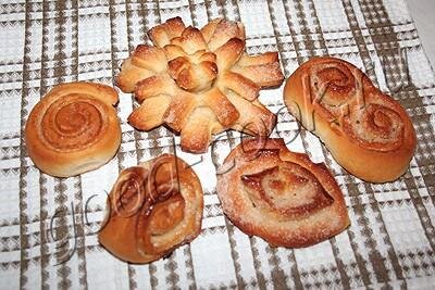 Плюшки, сделанные из рулетов, по виду не уступают порционным изделиям, а времени на них тратится значительно меньше.