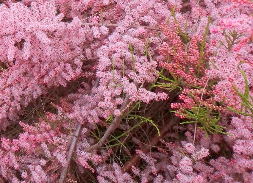 В наши дни возможности по оформлению сада практически безграничны. Садовые центры и питомники предлагают огромный ассортимент растений. Чаще всего мы в каждом дворе видим одно и тоже, как по копирке: туи, можжевельники, лилии, клематисы, тюльпаны и т.п. Но ведь есть много новых, очень интересных растений, которые могли бы стать изюминкой вашего сада. Одно из таких растений - тамарикс (тамариск). Тамарикс называют по разному: бисерник, астраханская сирень, божье дерево, жидовильник. Это листопадный или вечнозеленый кустарник, состоит из большого количества прутьевидных стеблей. На стеблях мелкие листочки похожие на рыбью чешую. Листочки могут быть зеленого, изумрудного цвета. Цветет тамарикс мелкими розовыми, малиновыми, реже белыми цветочками. Но самый изумительный вид имеет в фазе бутонизации. Весь куст покрыт бутончиками, напоминающими бисер. Производит впечатление искусственной поделки из бисера. Кто видел хоть раз тамарикс в начале цветения, тот обязательно захочет иметь такую ди