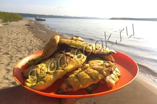 Курицу в медово-лимонном маринаде лучше всего готовить на углях.