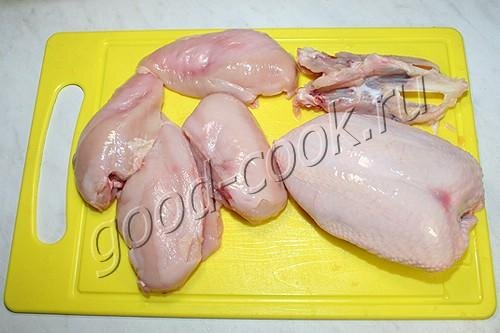 Всего из одной грудки должно получиться 6 плоских кусков филе. Маринад