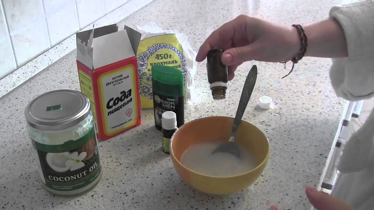 Рецепт совсем прост, для этого необходим всего лишь натуральный абсорбент, которым может являться обычный или кукурузный крахмал, а также сам дезодорант – пищевая сода, для аромата и дезинфекции – любые эфирные масла, например, чайного дерева, корицы или апельсина.