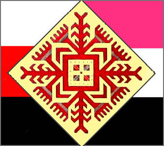 Члены правления Фонда спасения эрзянского языка предлагали дополнить флаг восьмиконечной розеткой.