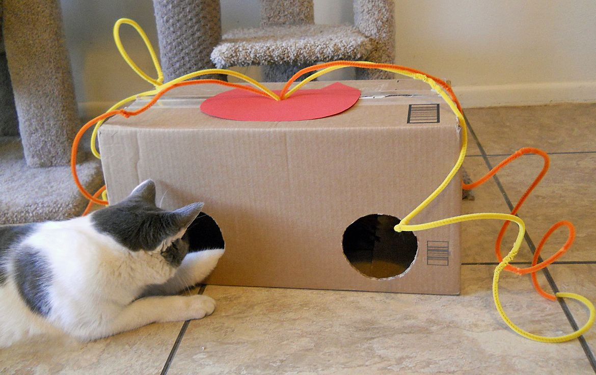 Игрушки для кошек бывают разными: от незатейливых в виде плюшевых мышек до радиоуправляемых моделей. Но многие хозяева предпочитают изготавливать игрушки для своих четвероногих любимцев собственными руками из доступных материалов. Но здесь существуют различные риски, которые могут нанести весомый ущерб здоровью животному вплоть до смертельного финала. Правила самодельных игрушек для котят 1. Ни в коем случае не полагается использовать материалы, которые любимец может запросто проглотить. Например, широко распространенные игрушки из фантиков, ниточек и мишуры являются игрушками, имеющими большой уровень риска. Ведь проглоченные котенком кусочки могут обернуться непроходимостью кишечника, что превращается в серьезную проблему, требующую операционных мероприятий. Также здоровью котенка несут угрозу покупные игрушки в виде перьевых дразнилок. По тем же причинам случайного проглатывания. 2. Материал игрушки должен быть достаточно прочным. Например, часто можно встретить в интернете рекоменд