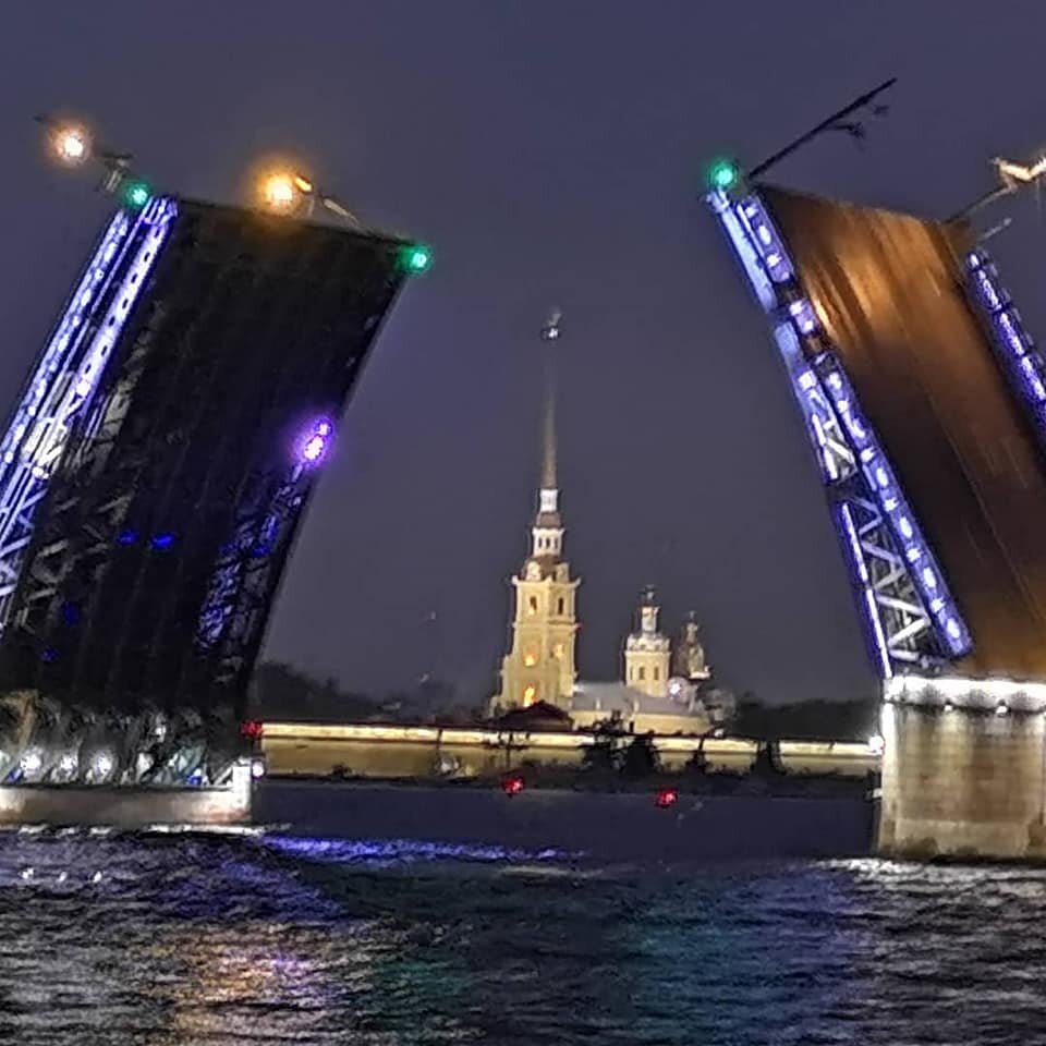Полночь. Пошли поглядеть на питерские понтоны. Полюбовались, послушали песни и поплелись по проспекту почивать.