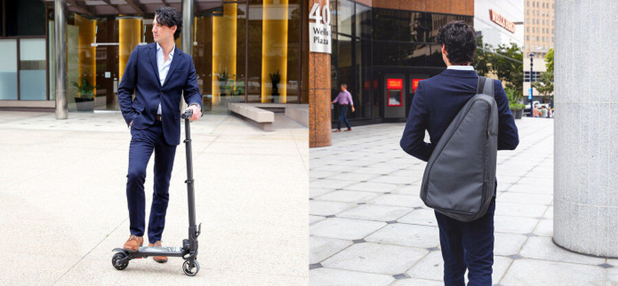 На Indiegogo появился проект суперскладного электросамоката MiniFalcon, который в сложенном виде помещается в рюкзак.