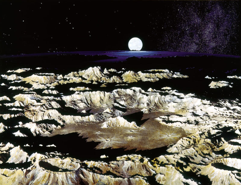 Перед вами творчество Чесли Боунстелла (Chesley Bonestell, 1888 г.-1986 г.) - художника, дизайнера и иллюстратора, отца современного космического искусства.