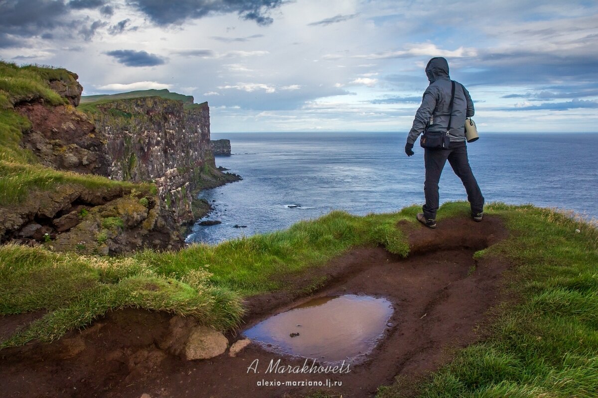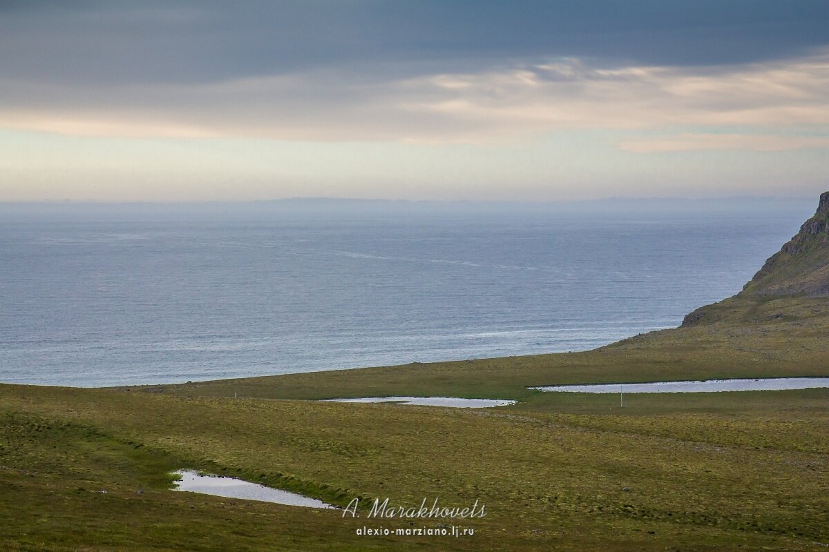 С западных фьордов Исландии открываются потрясающие виды на океан и вертикальные откосы скалистого берега. Здесь обитает многочисленная колония атлантических тупиков, которые привлекают к себе большое количество туристов со всего мира. В хорошую погоду воздух над водой прозрачен и чист. Десятки взоров устремлены на линию горизонта — там, вдали, видны горы и ледники Гренландии. До неё всего каких-то 370 километров.