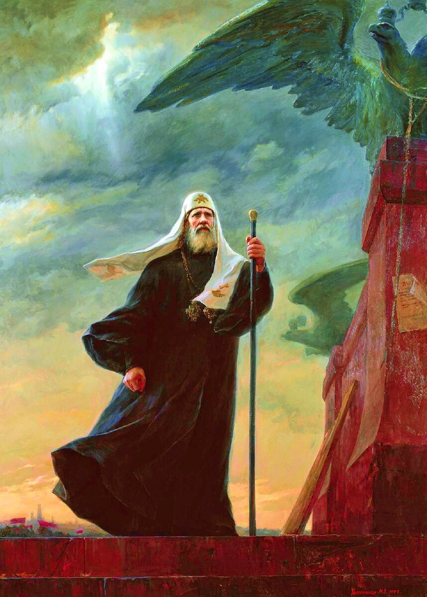 Вверху вы видите портрет Патриарха Тихона, который 19 января 1918 года, издал открытое Воззвание к правившим в стране большевикам - в котором, в частности, были такие слова:
