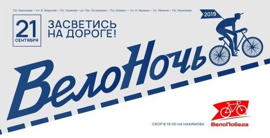 Пятый ежегодный велофестиваль "ВелоНочь" (6+) пройдёт в Севастополе 21 сентября. К участию в параде и велопробеге приглашаются велосипедисты-любители и профессионалы, достигшие 14 лет. Регистрация участников начнется в 19:00. Участникам велопарада организаторы рекомендуют приезжать в ярких карнавальных костюмах, не мешающих передвижению на велосипедах. Гостей фестиваля ждет конкурс на самый светящийся велосипед и самую безопасную вело-экипировку, показательные выступления велоспортсменов и севастопольской группы «Сатисфакция», а также конкурсы, розыгрыши призов и подарков. Стартует велопробег в 21:00. Велоколонна проследует по маршруту площадь пл. Нахимова – Б.Морская – ул. Гоголя – пр. Ген. Острякова – ТЦ «Океан» - ул. Н. Музыки – ул. Ленина – пл. Нахимова (для участников старше 14 лет) в сопровождении автомобилей ГИБДД. 22:00 – финиш велопробега на площади Нахимова, завершение фестиваля. Цель события – поддержать городскую велокультуру, привлечь жителей Крыма и Севастополя к заняти
