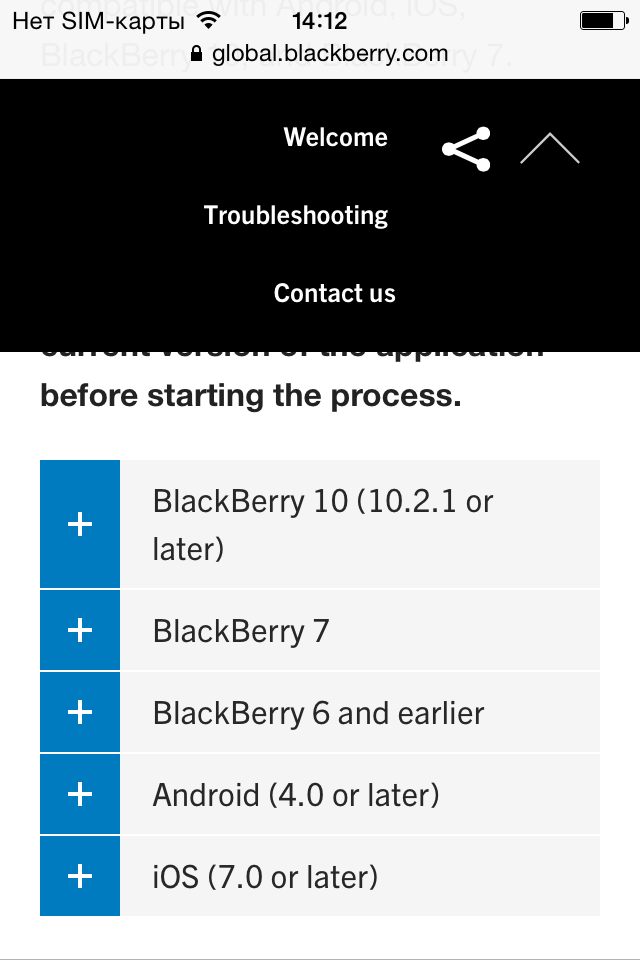 Фотографии и видео, снятые с помощью камеры iPhone (снимки и видеоролики, которые находятся в Camera Roll) Перед переносом данных приложение BlackBerry Content Transfer должно