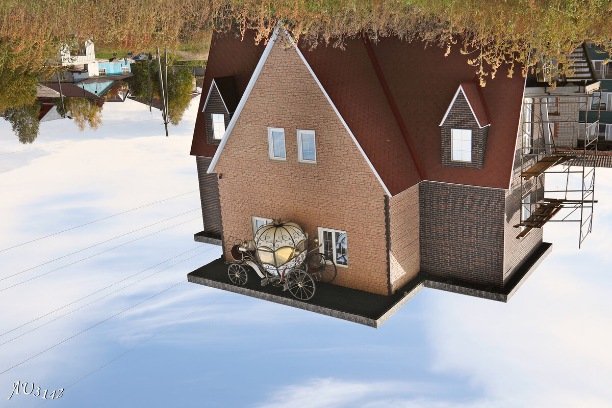 Года полтора назад читал, что в селе Филипповка Кунгурского района начали строить необычный дом. Прочитал и забыл, а тут, что называется с корабля на бал. Вернулись мы из путешествия на яхте в Чердынь, о котором обязательно расскажу чуть позже. Я, недолго думая, поехал в Кунгур на Фестиваль камнерезного искусства. Иду, наслаждаюсь погодой, покачиваюсь, отвык от твёрдой почвы, вдруг ... Даже не сразу понял, чтО передо мной, голова закружилась. Дом стоит, крыша в землю вросла, сказка, да и только. Обошёл вокруг, посмотрел. Чудеса… Начал припоминать, что в селе Филипповка строили дом-перевёртыш, дом вверх дном. Сегодня село практически часть Кунгура. Если перейти по мосту Сылву и двигаться к Кунгурской ледяной пещере, справа по ходу движения чудный домик и расположен. Предполагалось, что в необычном доме разместится музей восковых фигур. Потом хотели сделать музей камня – что, как мне представляется, для Кунгура логичнее. Но невозможно искать логику рядом с домом, который на своей крыше