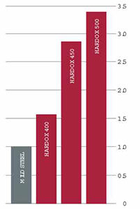 Знак «Hardox» на ковшах говорит о том, что сталь, которую использовали при создании полностью соответствует самым жестким стандартам, предъявляемым к ковшам. Тот, кто будет использовать ковш с такой маркировкой может быть уверен в его ударопрочности, высокой степенью устойчивости к износу и может быть использован при самых тяжелых работах. Сталь Hardox, в отличие от других марок стали, идеальна для ковшей экскаваторов, так как у нее отличная степень прочности и благодаря ей ковш будет работать на протяжении очень долгого времени, а смена компонентов будет очень простой операцией. Lетали, которые производят из данной марки всегда отличаются устойчивостью к воздействию абразивного износа. Сталь Hardox отличается от других марок тем, что у нее значительная степень твердости и устойчивости к ударам. Благодаря этому, ковши могут проработать очень долго. Ковш способен работать при больших нагрузках и не сломаться. Имеет огромное значение, чтобы ковш был сделан из чистой стали. Сера и фосфор