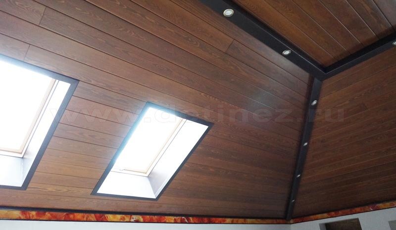 Фанера – это многослойный материал, склеенный из листов шпона. Использование фанеры при обшивке потолочной конструкции позволяет избежать рельефа и стыков, то есть выполнить потолок ровным. К сожалению, совсем без стыков обойтись не получится, но их будут существенно меньше, чем при обшивке досками. Типовой размер фанеры составляет 2,5 на 1,25 мм и это обеспечивает небольшое количество швов. Для изготовления фанеры применяют шпон или березы или сосны.