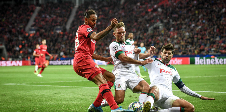 В пером раунде групового этапа в упорной борьбе "Локомотив" обыграл в гостях "Байер" со счётом 1-2. Открыли счет гости с передачи Жоау Мариу, отличился полузащитник Локомотива Гжегож Крыховяк 0-1. Довольно быстро хозяева отыгрались полузащитник Чарлес Арангис простреливал в штрафную где игрок Локомотива защитник Бенедикт Хеведес срезал мяч в свои ворота (автогол) 1-1. Второй мяч забили гости, после грубой ошибки вратаря, Баринов в падении направил мяч в пустые ворота 1-2. В втором тайме байер взвинтил темп и стал играть более агресивно в нападении. Ближе к концу матча Байер придавил Локомотив в своей зоне, но железнодорожники выстояли и довели встречу до победы. Таким образом Локомотив набирая 3 очка, возглавляет группу D.