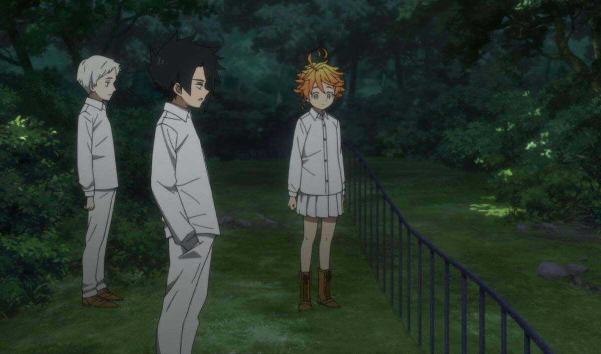 По уже своеобразной традиции перед перечислением аниме я хочу рассказать, чем руководствовался, выбирая эти тайтлы, чтобы вы поняли чего от них можно ждать. Во-первых, говоря о « маленьких детях» я имею ввиду людей до 14 лет (что отсеивает кучу тайтлов), во-вторых, проблемы не должны решаться «суперсилой» ну и в-третьих кошмарные условия, из которых нужно выбираться. Важно. Учитывая что, так или иначе, о «проблемах» мне придётся упомянуть, в подборке будут небольшие, но спойлеры. Обещанный Неверленд Нашумевшая новинка этого года, которая уже умудрилась собрать вокруг себя армию фанатов. В центре сюжета здесь находится сиротский приют жизнь, в котором напоминает утопию, но при этом нам сразу нагнетают атмосферу давая «ключи подсказки». На шее номера, взрослых почти нет, покидать приют нельзя, ушедшие не пишут писем. Поэтому не так удивительно что уже к концу первой серии мы выясняем, что этот «приют» лишь ферма для монстров, а дети их пища. Именно с этого открытия и начинаются отча