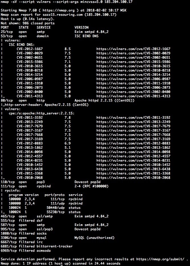 Плагин Vulners NSE - это отличное решение для полной скорости сканирования уязвимостей с использованием NMAP. Используя встроенную систему обнаружения программного обеспечения сканера, он сопоставляет информацию с базой данных Vulners для обнаружения уязвимых программ и сервисов.