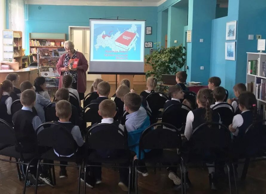 Экочас «С «Красной книгой» по Северной Двине» прошел 16 сентября в Октябрьской библиотеке №2 имени Н.К. Жернакова для юных читателей. Что такое «Красная книга?» Почему «Красная»? Кто создает «Красную книгу?» – эти и другие вопросы были в центре разговора с юными читателями. Внимание мальчишек и девчонок привлекли яркие, «классные» фотографии животных в «Красной книге России», в журналах «Флора и фауна». Ведущая эко-часа Неверова Елена Васильевна представила «Красную книгу Архангельской области» и предложила с ней совершить виртуальное путешествие по Северной Двине. Рассматривали фотографии редких речных рыб и моллюсков. Остановка «Лесная полянка» вызвала много воспоминаний: кто-то любит устраивать шумные игры, катание на «квадриках», сидеть у костра, плести венки, ловить бабочек. Оказывается, что многие растения, насекомые и животные очень редкие, исчезающие из наших лесов и полей. Читатели не только рассматривали фотографии, но и слушали описание среды обитания, характера животного