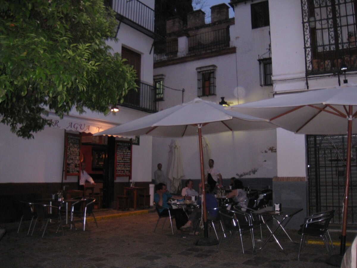 Так вот о телефонах. Каждый член семьи говорил по своему телефону. Какой у них был темперамент! Я думаю, что все, кто находился на площади в этот момент, были в курсе каждого из трех разговоров. Но семейство это не смущало. Они как бы никого не слышали... А на романтический Санта Круз надвигается ночь. Какое наслаждение оказаться в таком кабачке, заказать стаканчик любимой "сангрии" или бокал божественного испанского хереса. А над столиком стоит апельсиновое дерево, горит свеча, и ты думаешь, а жизнь хороша Район Санта Круз. Так называемый балкон Розины. Ночь. А если повернуть голову в другую сторону, то над крышами невысоких домов горит Хиральда. А вокруг разносится музыка. В средневековых арках акустика ну очень хороша! Местные музыканты это знают. Продолжение следует