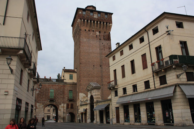 Поэтому уже ранним утром я вышла из здания вокзала, прошла вперед сквозь просто огромное Марсово поле и, свернув направо и пройдя сквозь ворота возле старинной Крепостной башни [Torre di Castello], оказалась в историческом центре Виченцы.