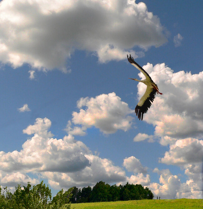 Я продирался к ним, шумя клеверами, - аисты не обращали внимания. Время от времени они взмахивали крыльями, однако улетать медлили. Возможно, они просто ощупывали ветер, и им не нравилось его направление или сила. Но хотелось думать, что они тоже залюбовались нашим – нашим с ними - миром.