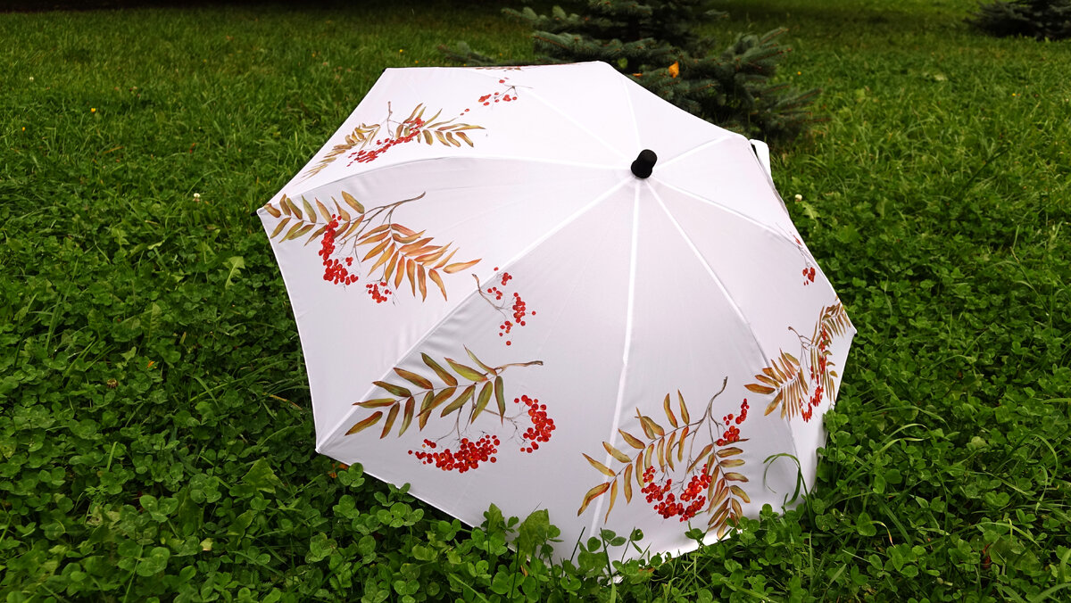 Яркий, стильный уникальный зонт ручной работы будет радовать вас меланхоличными пасмурными днями. В этом мастер-классе художник Наталья Удовина подробно и пошагово объясняет как без особых навыков рисования нарисовать сочную, реалистичную рябину. И прекрасная новость для всех подписчиков канала!