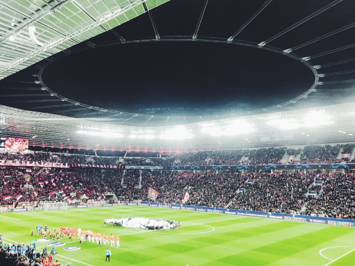 Всем привет, это Петр. Вчера меня занесло на матч Лиги Чемпионов, в котором леверкузенский Байер принимал московский Локомотив. Сам я ни за одну из этих команд не болею, но друг у меня фанат Локо, и я пошёл с ним за компанию. *** У Байера небольшой уютный стадион, но добираться до него не удобно. Автомобильная парковка далеко, ехать от неё надо на автобусе минут 15. Автобус бесплатный, специально для болельщиков. Парковка, кстати, тоже бесплатная. Днём она только для работников Байера, а в дни матча могут парковаться болельщики. На пути к стадионы продавали шарфики — неофициальные. Флаг России там перепутали с, кажется, несуществующим: бело-красно-синим. Синий, причём, был даже ближе к зелёному. Надо было сфотографировать! Наши места были рядом с сектором Локомотива, что добавляло и азарта, и шарма. Выше ярусом сидел болельщик Локо, раскрашенный с клубные красно-зеленые цвета, с флагом и в футболке, но он был там совсем один, и поэтому с грустью поглядывал вниз на свой сектор. Периодич