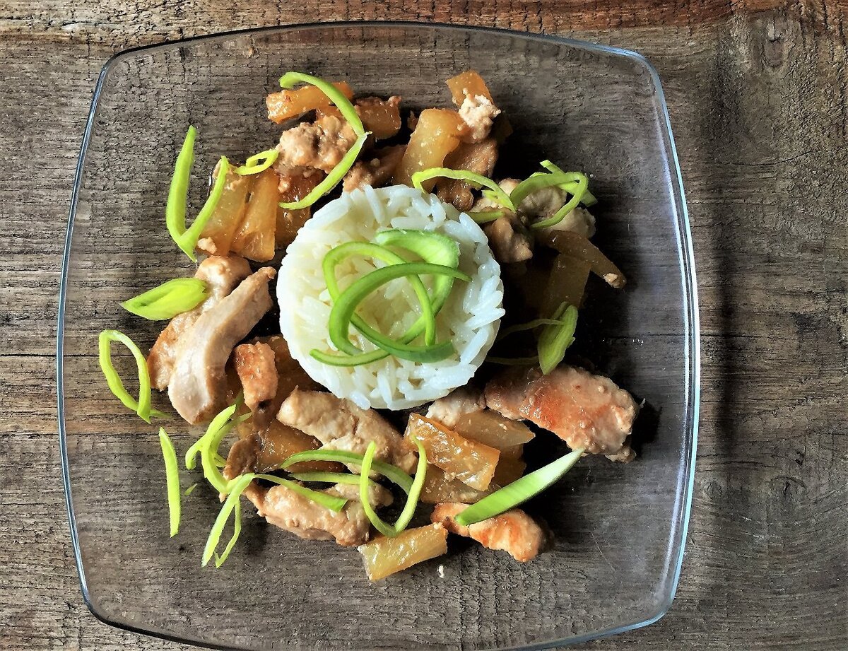 Быстрый темп современной жизни диктует свои правила при приготовлении еды. Я выбираю блюда, на которые необходимо затратить минимум времени, минимум продуктов, и при этом на тарелке будет полноценный вкусный ужин или обед. Курица с ананасами – блюдо, которое я готовлю в разных вариациях, вкус от этого кардинально не меняется, но выглядит каждый раз по-новому. Сегодня готовлю для себя. Подача будет простая. Набор продуктов: Приготовление: Куриная грудка с ананасами может быть подана, как самостоятельное блюдо, либо с гарниром. Сегодня я готовила с отварным рисом, который варила одновременно с приготовлением курицы. Рис можно заменить любым гарниром, который вам предпочтительнее. Рис, гречку, чечевицу, полбу, булгур и тому подобные крупы я предпочитаю покупать порционные в пакетах, не надо заморачиваться с отмериванием продукта и воды. Вода вскипела, опустила пакетик, поставила таймер, по истечении времени, воду слила, пакетик вскрыла – рассыпчатый гарнир готов! Приступаем к приготовлени