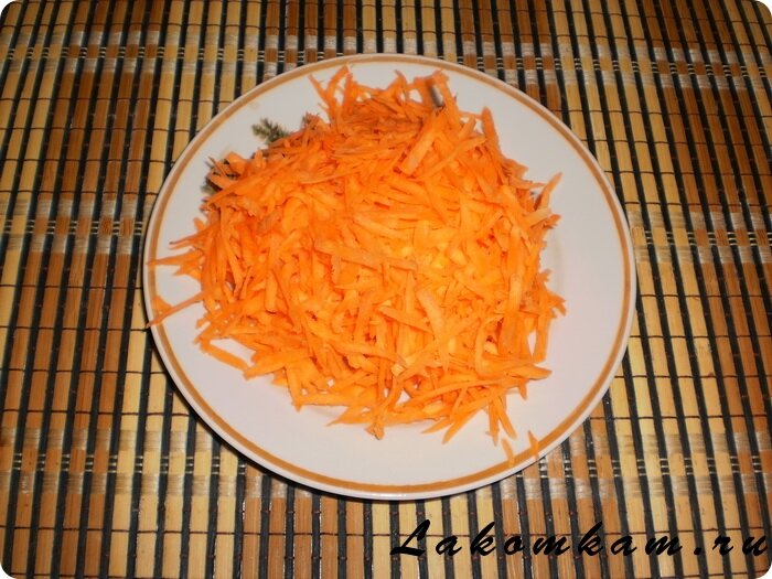Приготовление азу из курицы с гречкой в мультиварке. Морковь чистим и трём на тёрке.