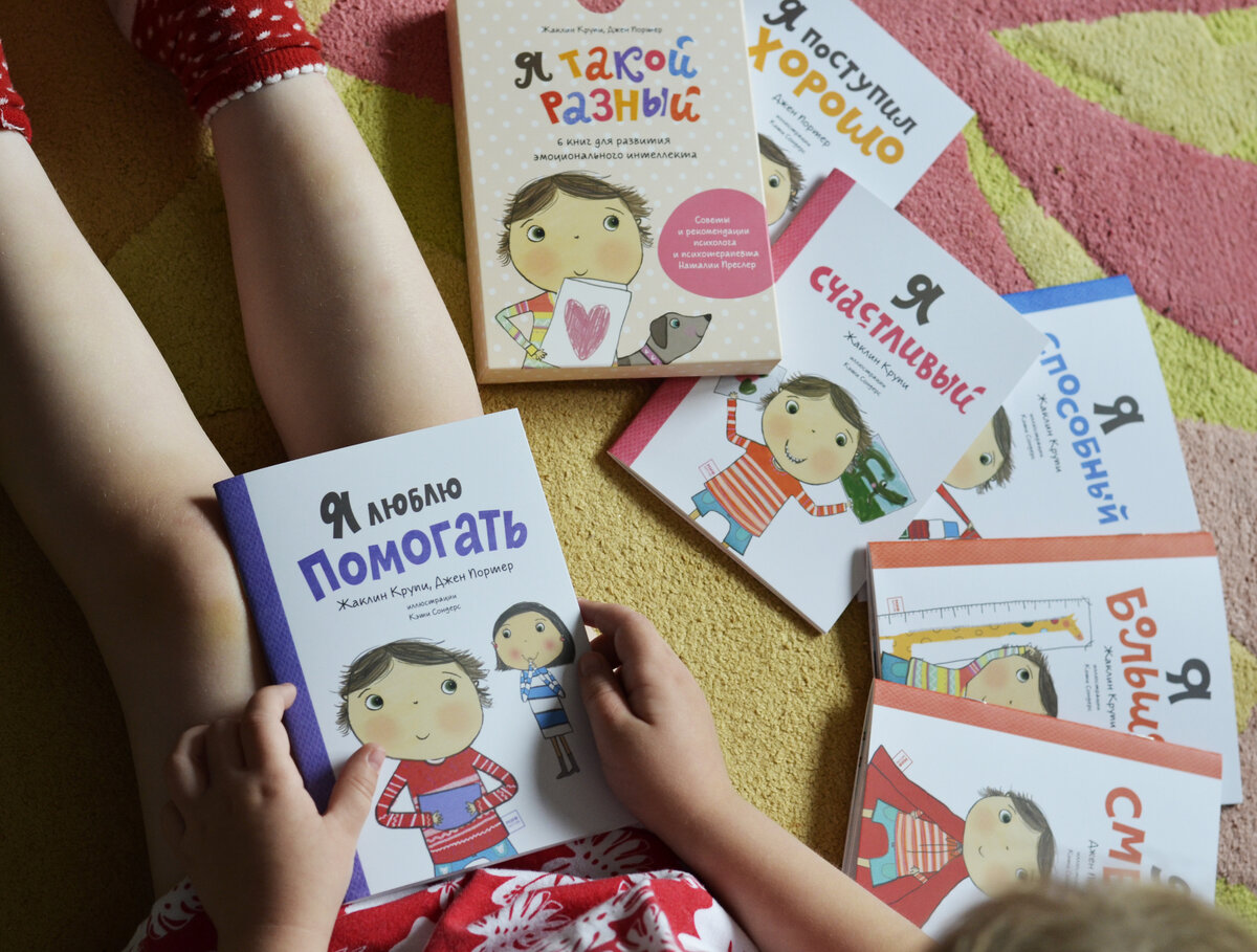 О важности эмоционального интеллекта пишут много и часто. Особенно это важно в теме воспитания детей. Но вот вопрос: как этот интеллект развивать? Я на эту тему читала много книг «для взрослых». Все в целом понятно и логично, правильно. Только вот уже через неделю в ежедневной суматохе 90% информации вылетает из головы. Надо книги держать постоянно под рукой. И почаще к ним возвращаться. А это довольно сложно. Другое дело детские книги. Они меньше по объему и проще. А пока ты ежедневно читаешь одно и тоже по нескольку раз, информация запоминается значительно лучше. Поэтому идея детской книги про эмоциональный интеллект и воспитание ребенка мне очень понравилась. Как раз издательство «Манн, Иванов и Фербер» рассказали о новинке. Это комплект из 6 небольших книг: «Я такой разный. 6 книг для развития эмоционального интеллекта» Жаклин Крупи, Джен Портер. Книги 12*16,5 см по 24 страницы упакованы в картонную коробочку. Книг шесть: «Я большой», «Я способный», «Я смелый», «Я поступил хорошо»