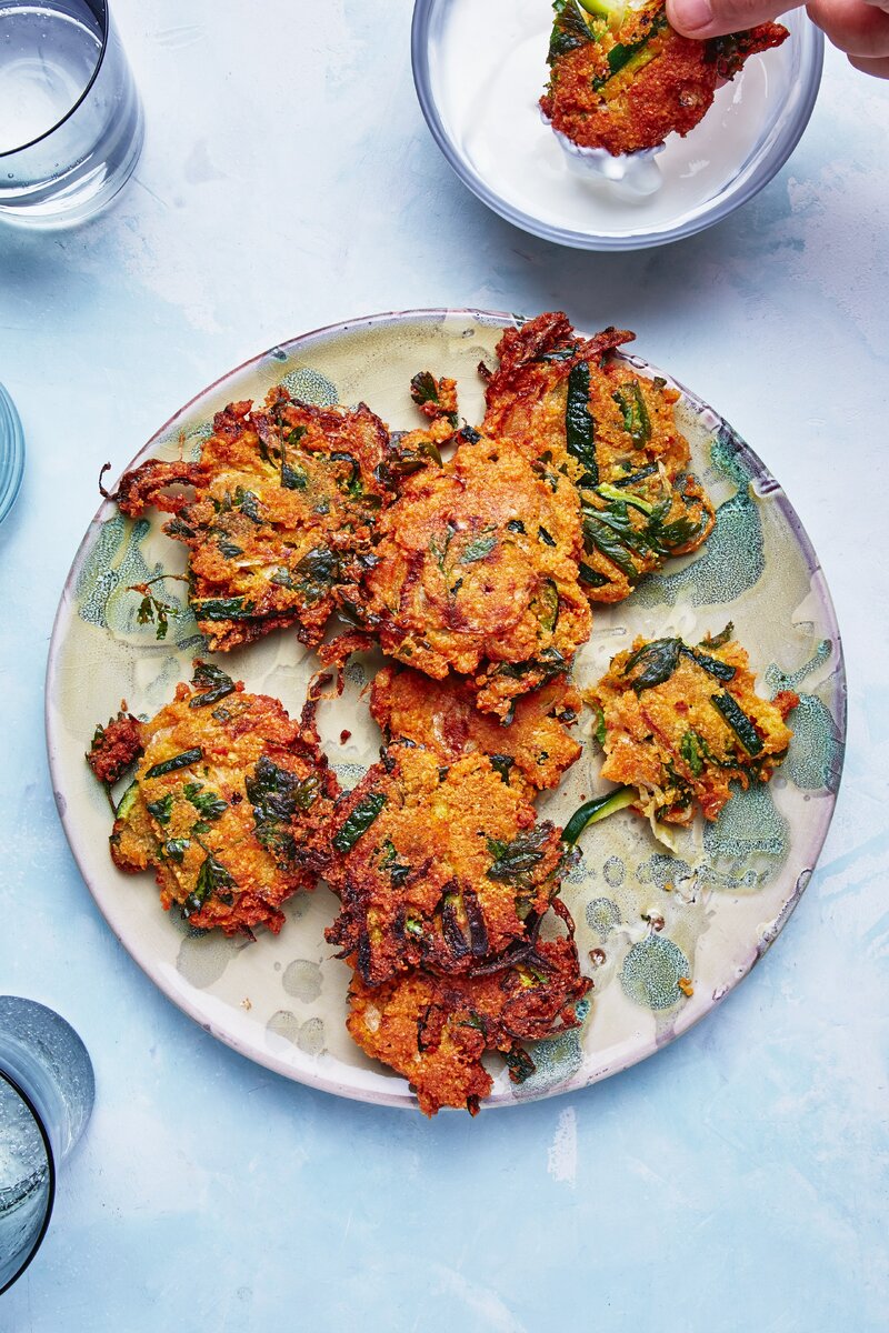 Оладьи из кабачков - это не то блюдо, которое я когда-либо хотел бы приготовить. Они берут водянистый, измельчая кабачок до забвения и утяжеляя его толстой смесью муки и яиц. Даже если вы делаете все правильно-солите и выжимаете кабачки, чтобы вытянуть лишнюю влагу и обжарить их в чугуне до тех пор, пока хрустящая и золотистая природа кабачков не проявится, оладьи становятся плотными и влажными, когда они полежат. Поэтому, когда мне было поручено разработать рецепт из кабачков, который даже я могла бы полюбить, я украла трюк оладий моей матери. Вместо муки и яиц они сделаны из смешанной красной чечевицы, которая умудряется оставаться тонкой и хрустящей вопреки всему. Лучше всего, это однокомпонентное тесто (плюс несколько специй): никаких яиц или муки не требуется. Я начинаю с вымачивания промытой красной чечевицы, пока она не станут пухлой и мягкой, прежде чем взбить ее в грубое пюре в кухонном комбайне. Это грубое тесто жизненно важно для окончательной легкой и хрустящей текстуры