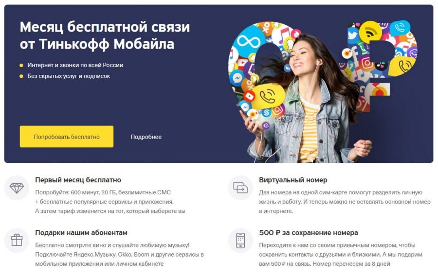 Топовый набор услуг «Тинькофф Мобайл» стоит 1501 рубль. Туда входят: