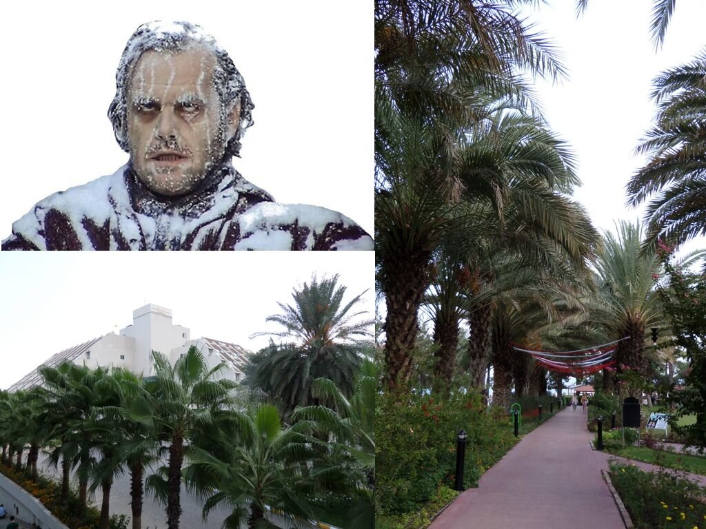 Что ожидает человек, когда летит в отпуск в Турцию? Наверное, что будет стоять прекрасная погода, тепло и солнечно. Но ведь сентябрь - это уже осень, может стоит выбрать другое направление? Но мы то знаем, что этот месяц считается бархатным сезоном даже на наших курортах, что уж говорить про Кемер, расположенный еще южнее у Средиземного моря. Нас не проведешь, поэтому решено было лететь в Турцию в конце сентября. Тем более, заселение предполагалось в один из крупнейших пятизвездочных отелей. А это должно означать обилие еды, комфорта и всевозможного сервиса для измученных осенними холодами наших соотечественников. Выбирая формат заселения еще здесь было предложено два варианта: основной корпус и, так называемые, бунгало. Разница в том, что главное здание расположено ближе к пляжу и непосредственно над столовой, бунгало же находилось в отдалении. Решала как всегда во многом цена. За второй вариант просили существенно меньше, да и само экзотическое слово "бунгало" так будоражило сознан